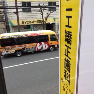 院長室の窓から見える停留所もいつも人が並んでいます。